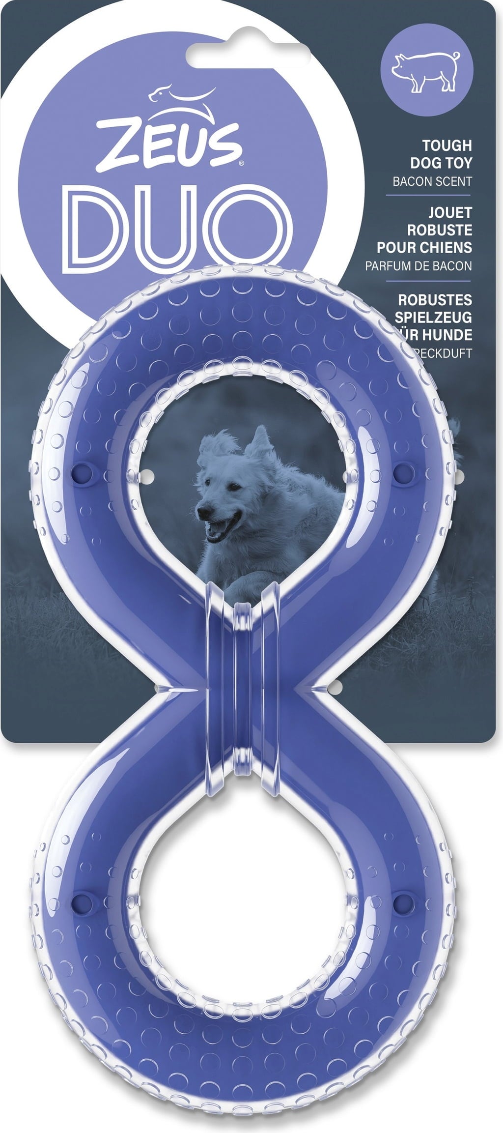 Cependant, leur truffe ne se développe pas ainsi du jour au lendemain : il faut encourager les chiens et les entraîner. Avec l'anneau en 8 Duo de Zeus, vous entraînez simultanément l'odorat et la mastication de votre fidèle compagnon ! Ce jouet résistant incite les chiens à mâcher en les séduisant avec une délicieuse odeur de bacon !